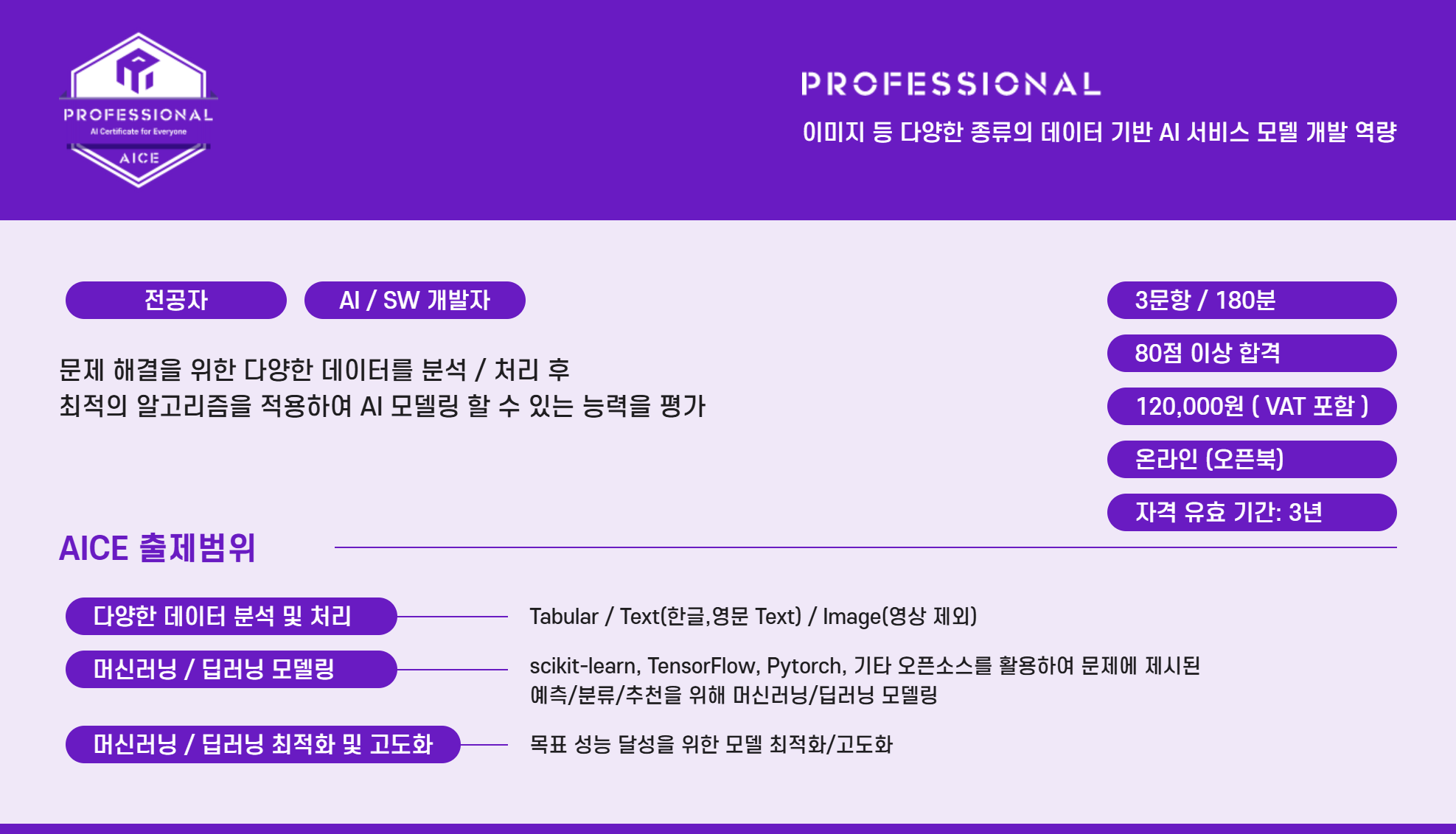 자세한 내용은 : AICE 홈페이지에서 살펴 볼 수 있다.