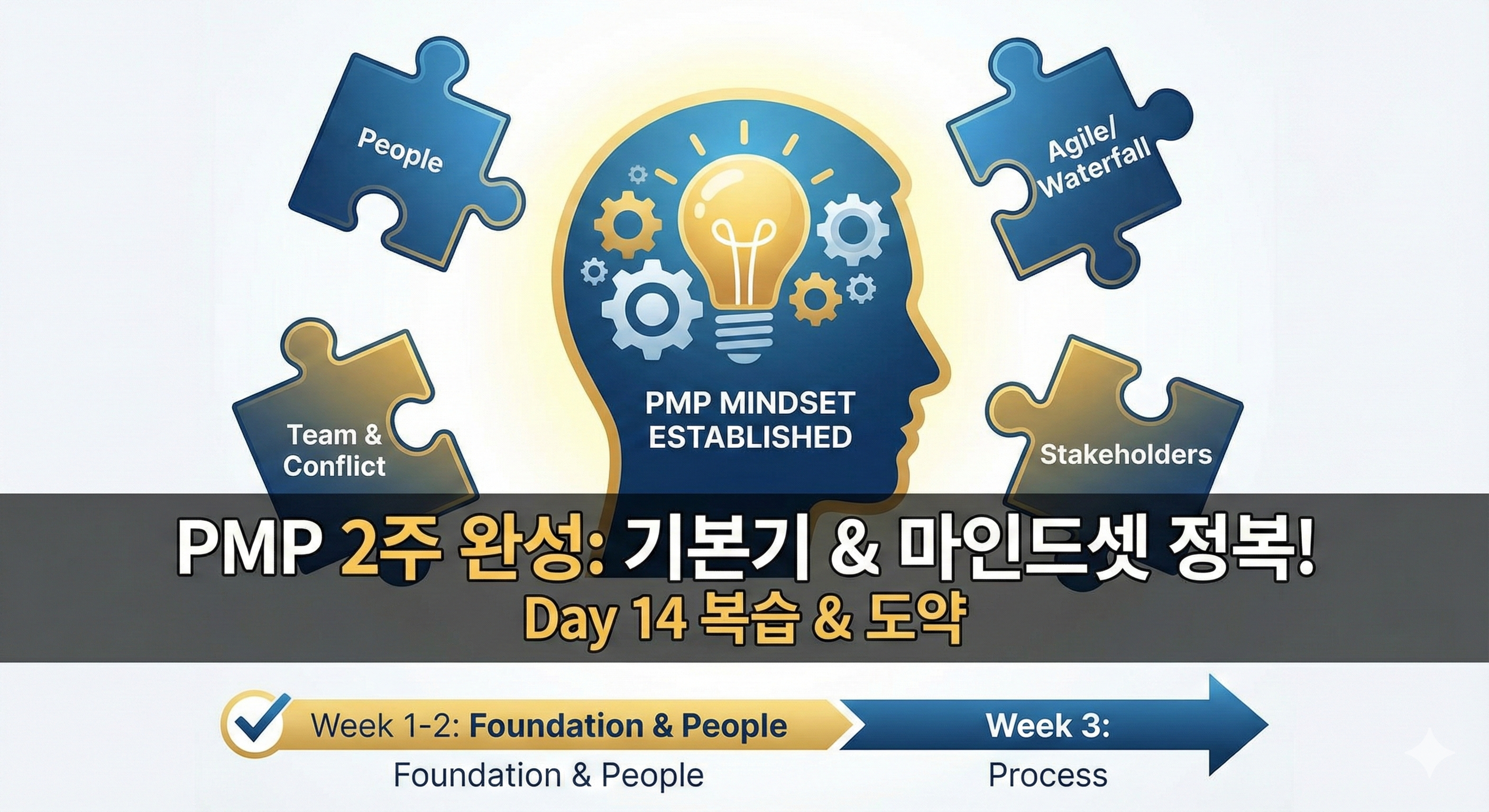 - PMP 마인드셋(Mindset) 확립: 문제를 접했을 때 "PMI가 원하는 이상적인 PM"처럼 생각하기.