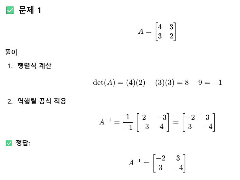 즉, 행렬과 그 역행렬을 곱하면 단위 행렬이 된다는 것이 핵심 개념입니다.
